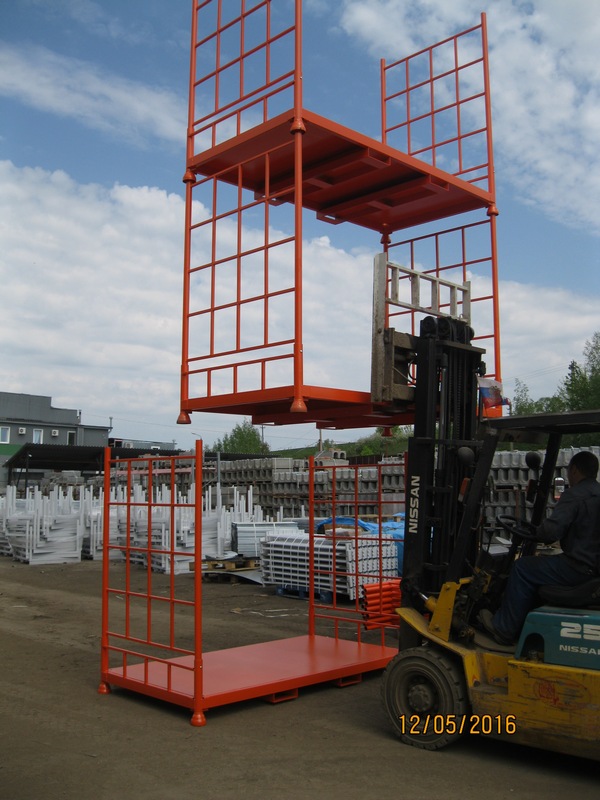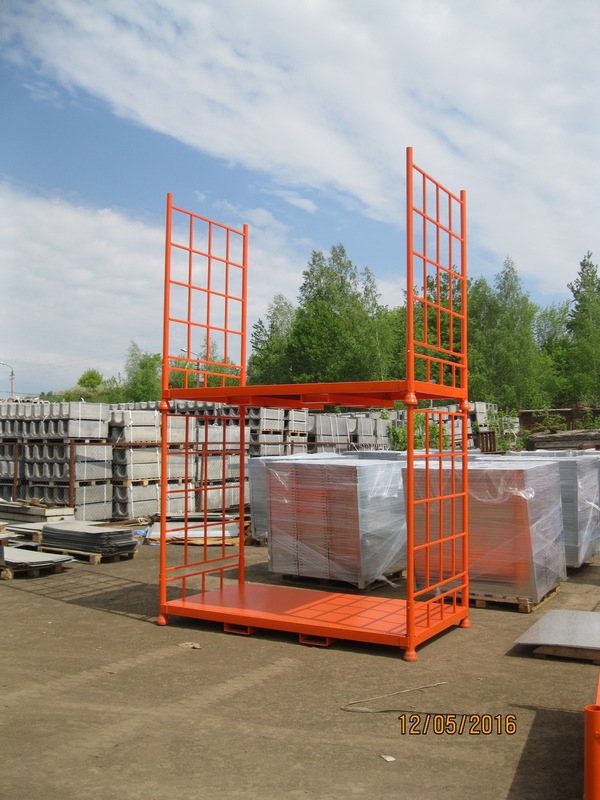 Данный вид стеллажей позволяет оперативно создать зоны многоуровневого хранения на любом складе, в том числе и на открытой площадке. При этом груз находится внутри конструкции. Таким образом фрейм выступает в качестве контейнера, которые можно ставить друг на друга. Сварная рама придает необходимую жесткость конструкции. А уловители позволяют легко устанавливать фреймы друг на друга.