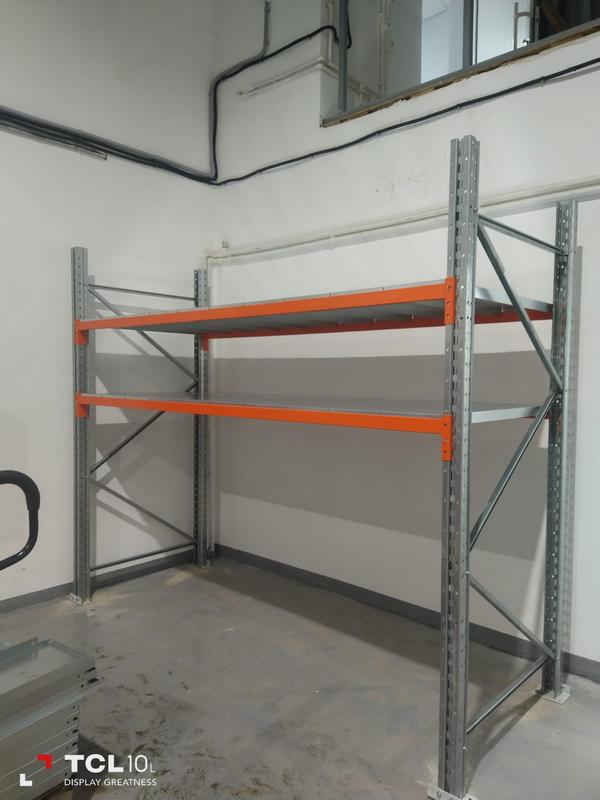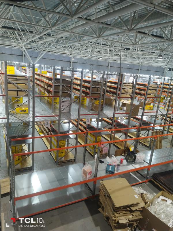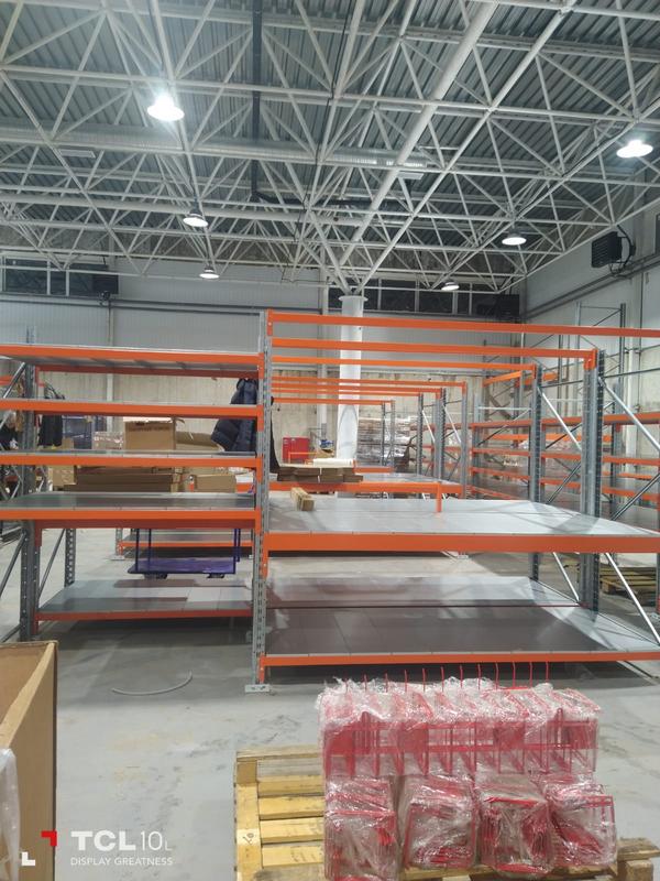 Публикуем несколько фотографий, сделанных на финальной стадии сборки стеллажной конструкции. А также видеоролик уже работающего склада.